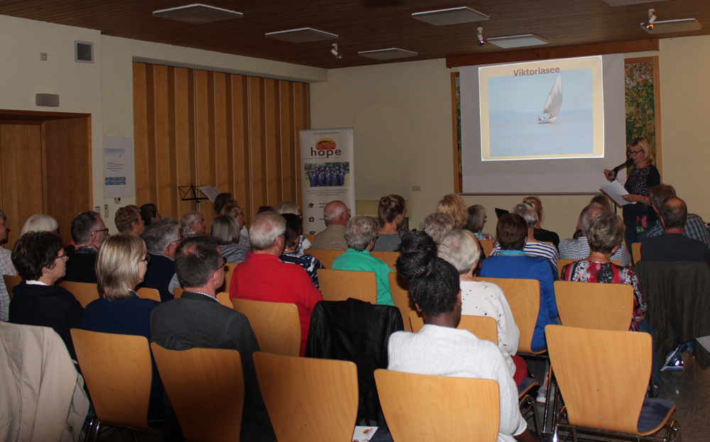 Vor allem wurde über die Arbeit von hope e. V. in West-Kenia berichtet, über die Leistungen und Erfolge des Vereins in seiner noch jungen Geschichte. Anhand einiger Einzelfälle erhielten die Zuhörer Einblicke in die Not und das Leid der dort lebenden Kinder. Durch regelmäßige Ernährung, medizinische Versorgung und Bildung ermöglicht hope e. V. den jungen Menschen ein gesundes Aufwachsen und vermittelt ihnen eine Lebensperspektive. Die Ausführungen wurden durch Bilder und Filmsequenzen veranschaulicht, die beim Besuch von fünf Vereinsmitgliedern im April dieses Jahres im Projektgebiet entstanden sind.